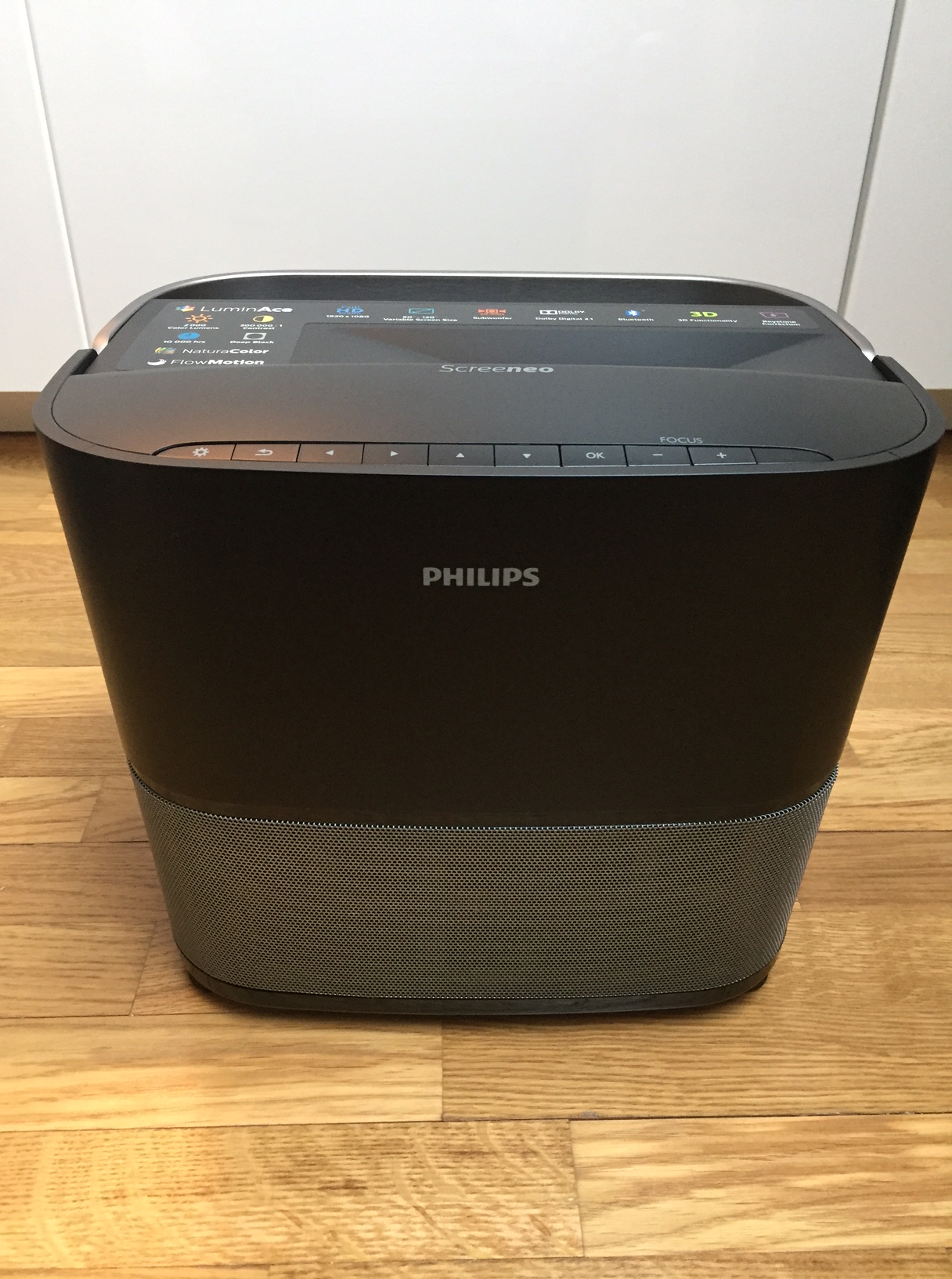 Avec ce produit, Philips règle ces problématiques : le vidéo projecteur se met au pied de l’écran ou du mur et donc à proximité des équipements (console de jeux, lecteur bluray…).