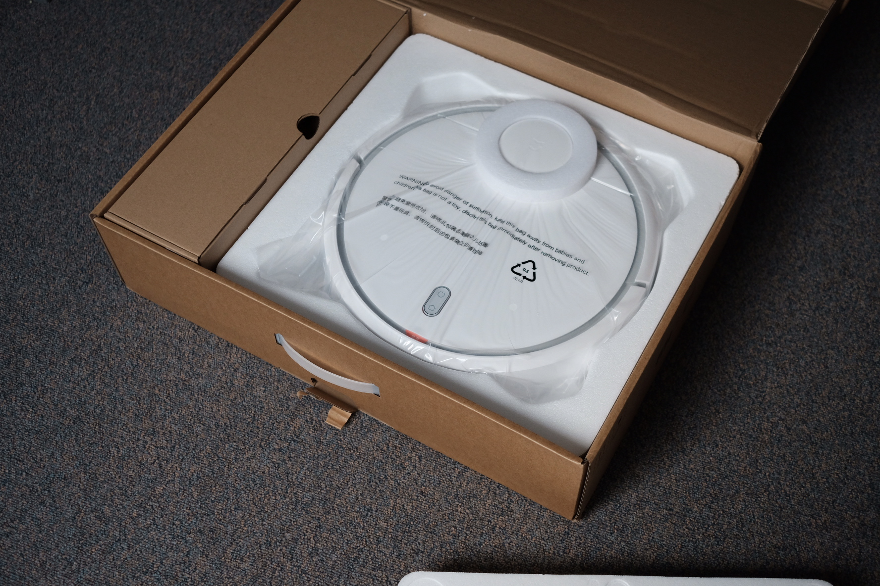 L’aspirateur parle en chinois a l’installation mais il est possible d’installer un pack Anglais à partir de l’Appli.